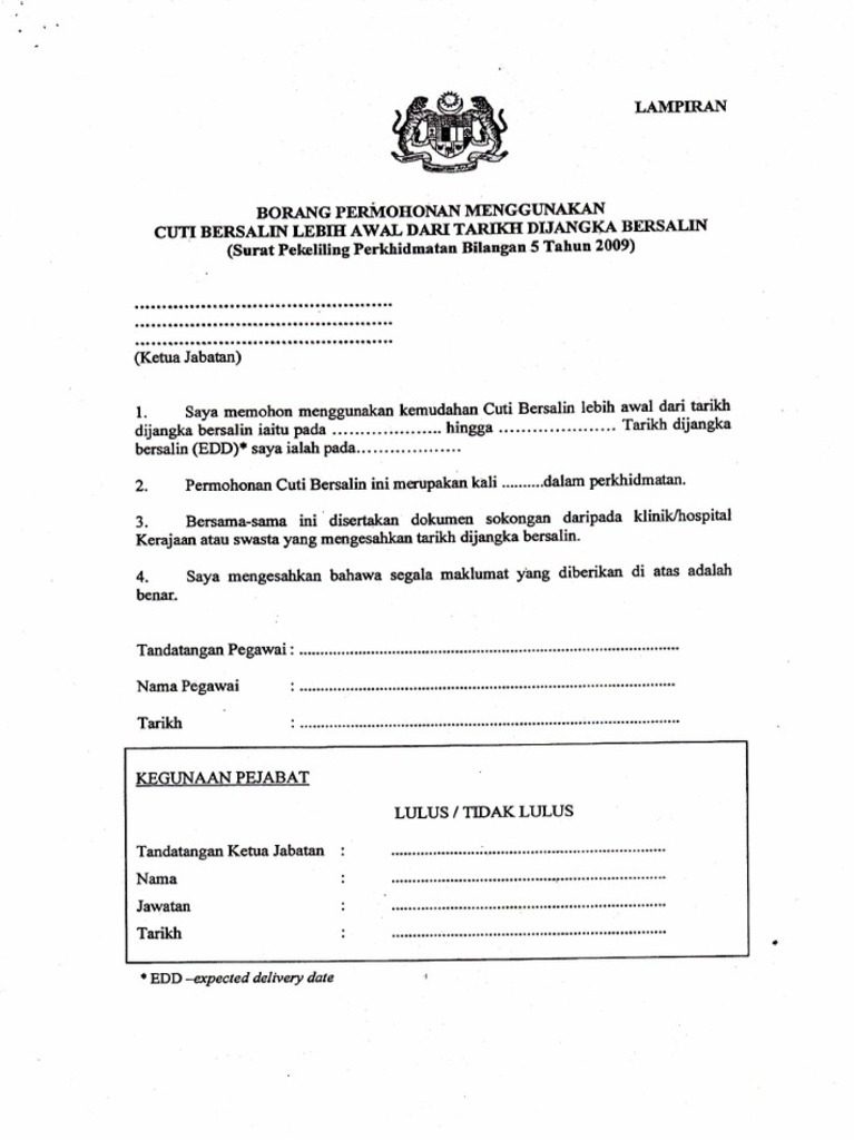 Borang Permohonan Menggunakan Cuti Bersalin Lebih Awal Dari Tarikh Dijangka Bersalin Pdf